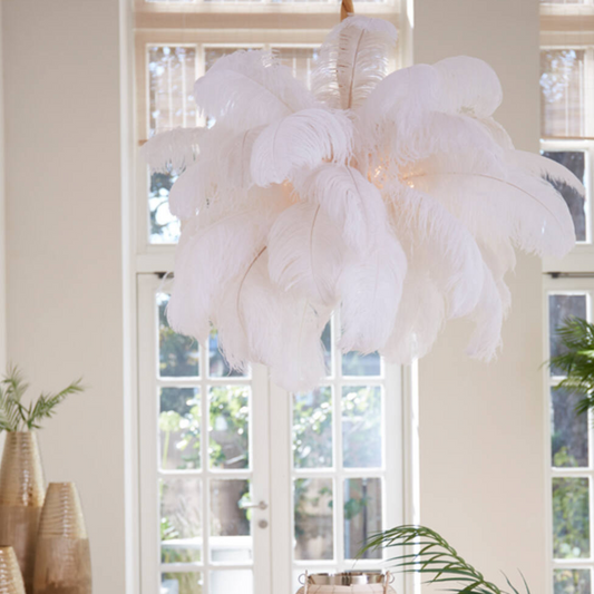 CANDEEIRO SUSPENSO FEATHER DOURADO E BRANCO - C80