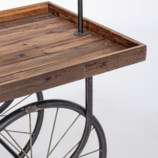MESA EXPOSITOR C/RODAS E TAMPO DE MADEIRA DE ABETO - 160x70