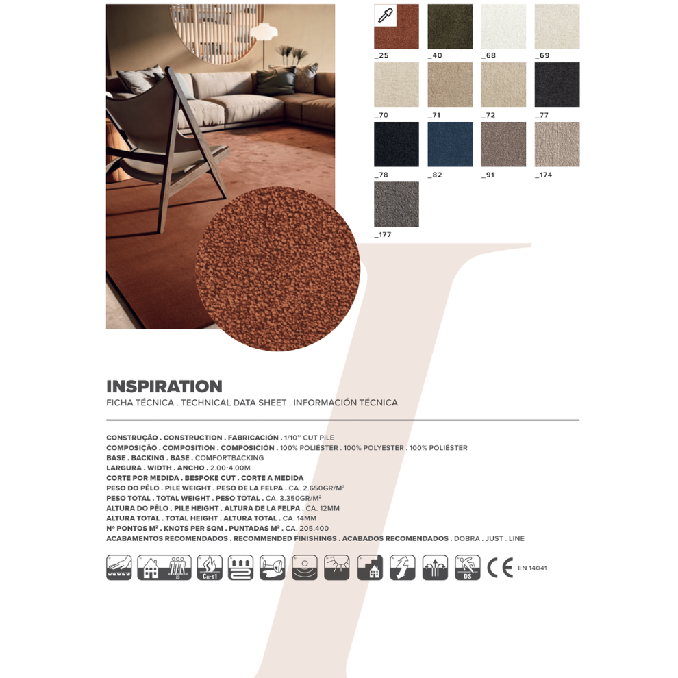 A Carpete Inspiração destaca-se pela sua densidade e firmeza, atributos específicos do polipropileno presente na sua composição.