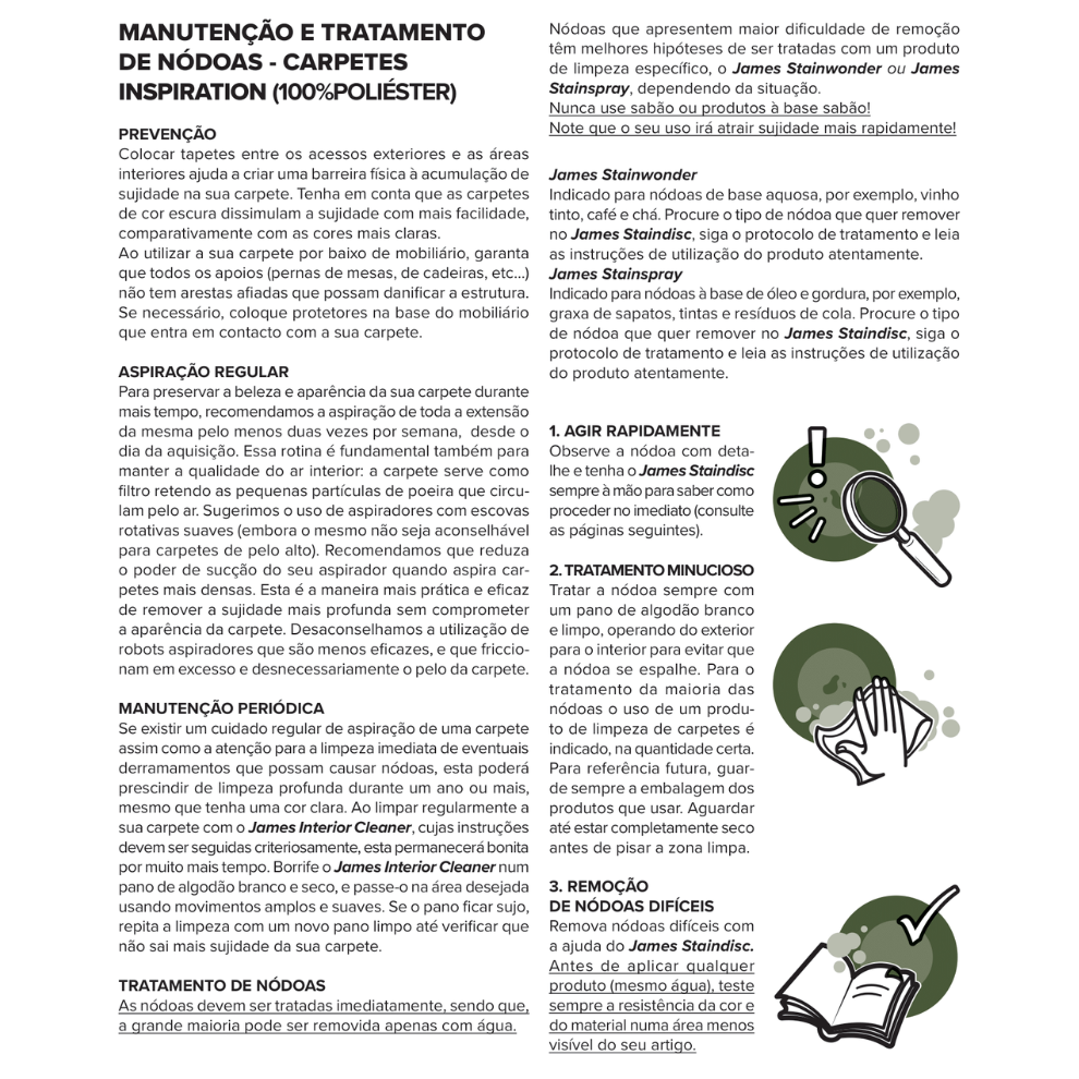 Para manchas difíceis, recomenda-se limpeza profissional.