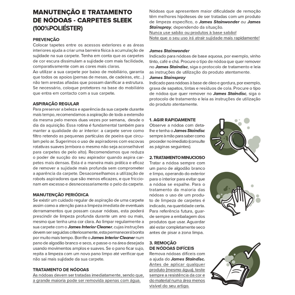 Para manchas difíceis, recomenda-se limpeza profissional.